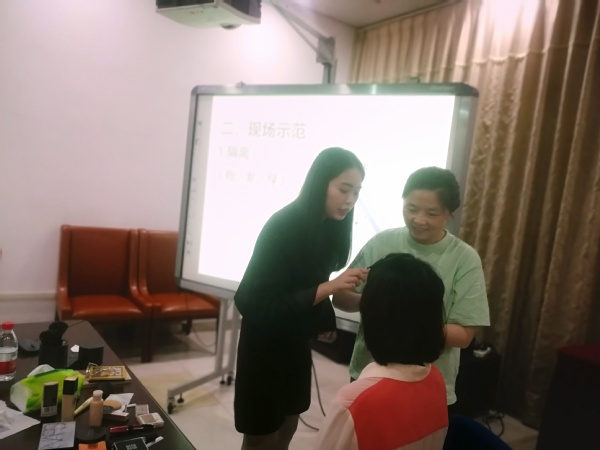 本次活動邀請了資深妝容設計師前來培訓指導,彩妝老師為大家介紹了如何根據自己的膚色選擇適合的底妝、彩妝的分類以及具體的化妝步驟,并進行了現場演示,邀請了一位女教師作為模特為其化妝,講解了眼部、唇部、面部等關鍵部位的化妝小竅門,素雅大方的妝容贏得大家的好評。在互動環節,現場女教師互為模特在化妝老師的指導下學習化妝,并紛紛對化妝中遇到的各種問題踴躍提問,培訓活動在輕松愉悅的氣氛中圓滿結束。