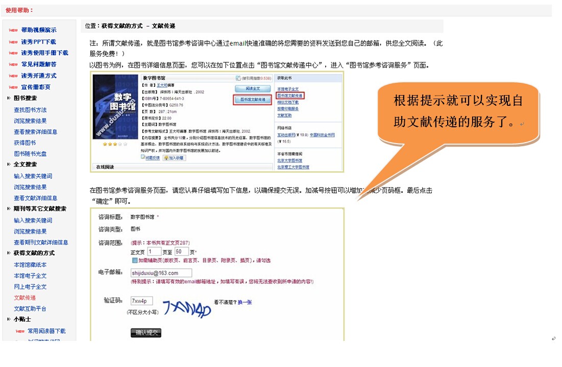 若檢索結果不能在本館獲取,則可選擇文獻傳遞,即以下界面,填入電子郵件地址獲取文獻