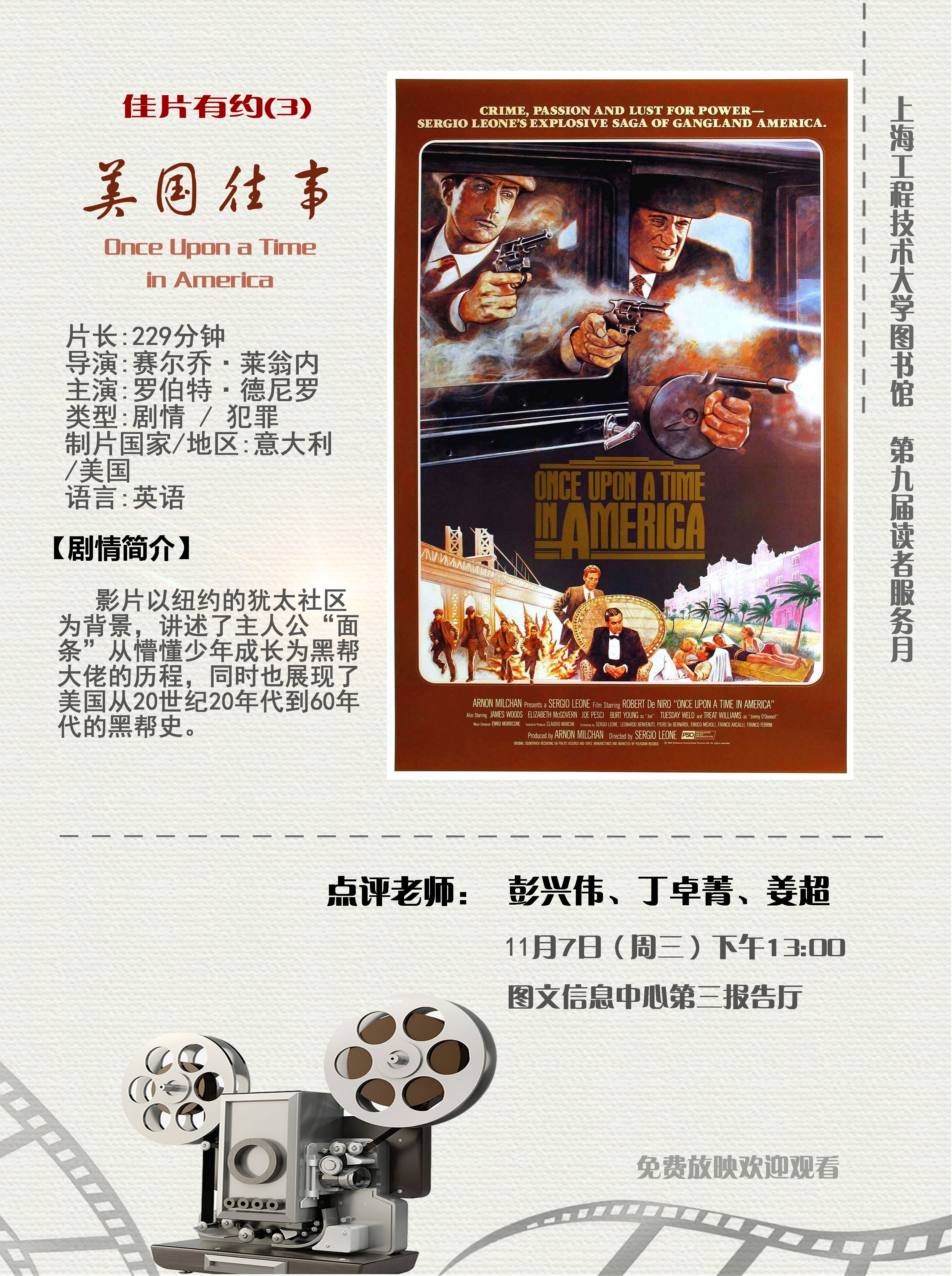 佳片有約(3)《美國往事》11月7日(周三)13:00三報