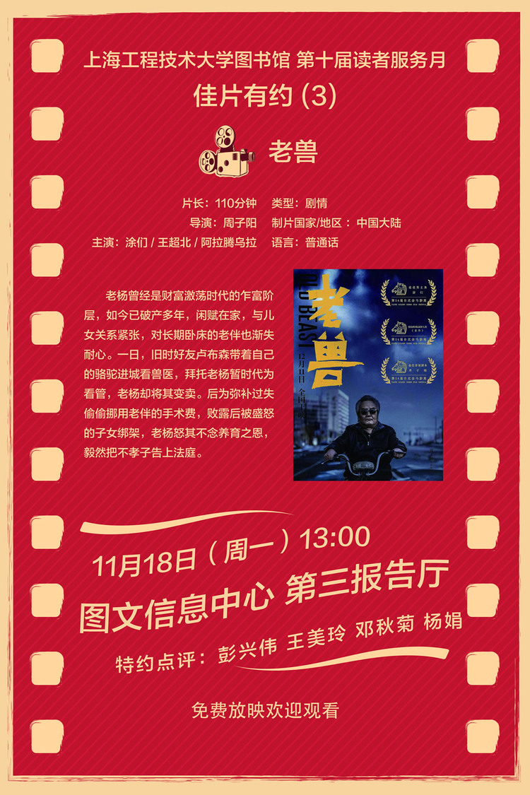11月18日(周一)13:00第三報告廳佳片有約《老獸》